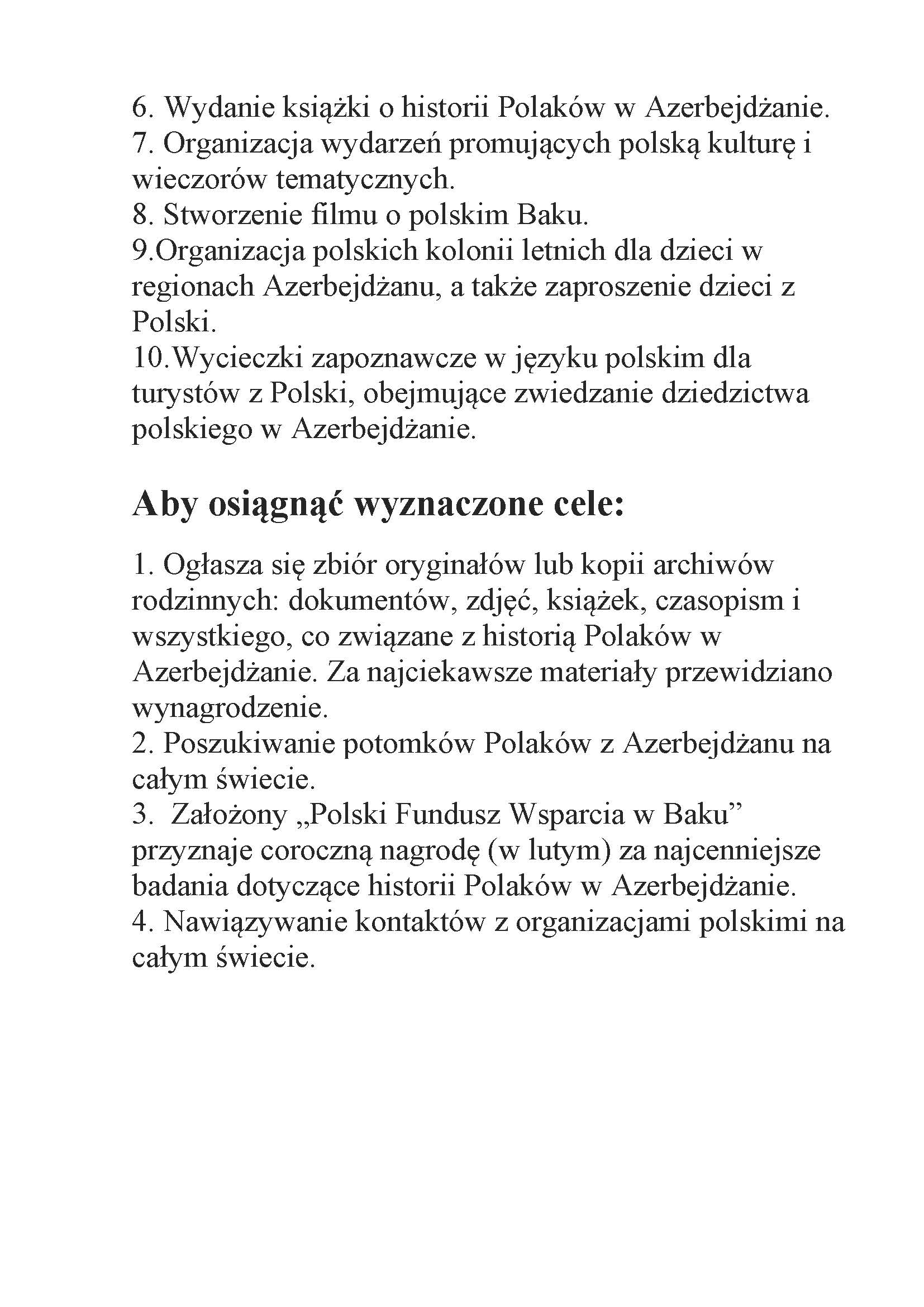3.Созданный "Польского Фонда поддержки в Баку" объявляет ежегодную выплату (в феврале) за наиболее ценные исследования, связанные с историей поляков Азербайджана.